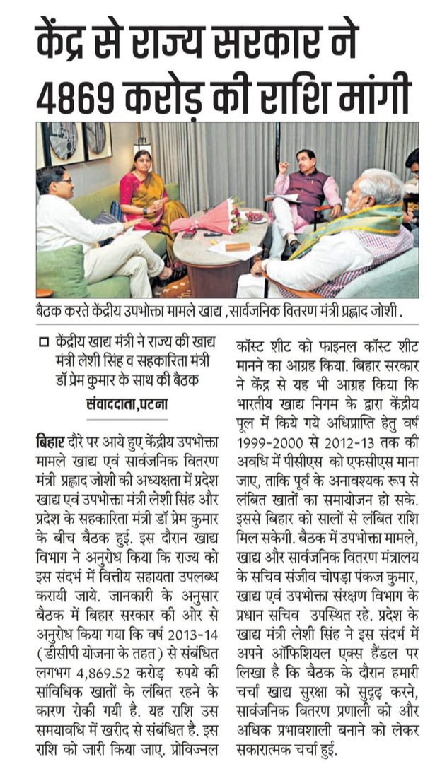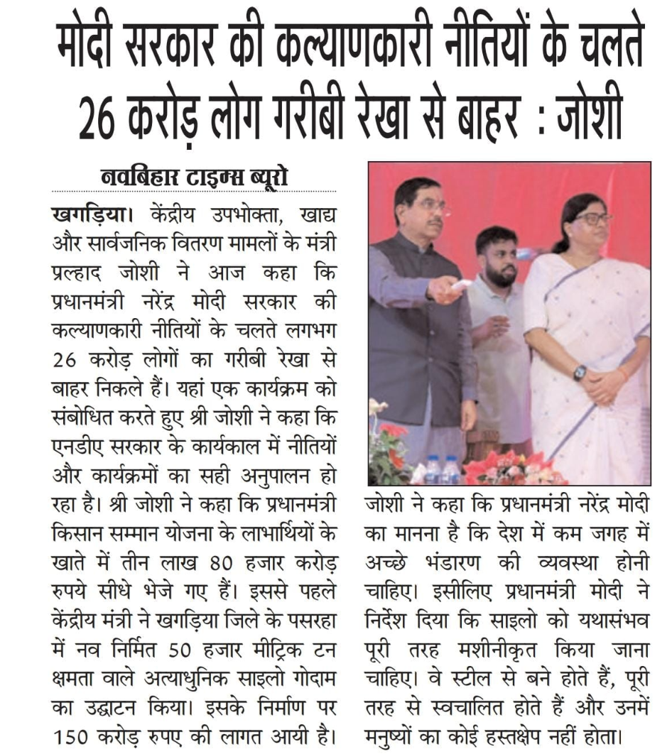 Since June 2024, Shri Joshi has taken on the additional responsibilities of Consumer Affairs, Food and Public Distribution, and New and Renewable Energy. He has