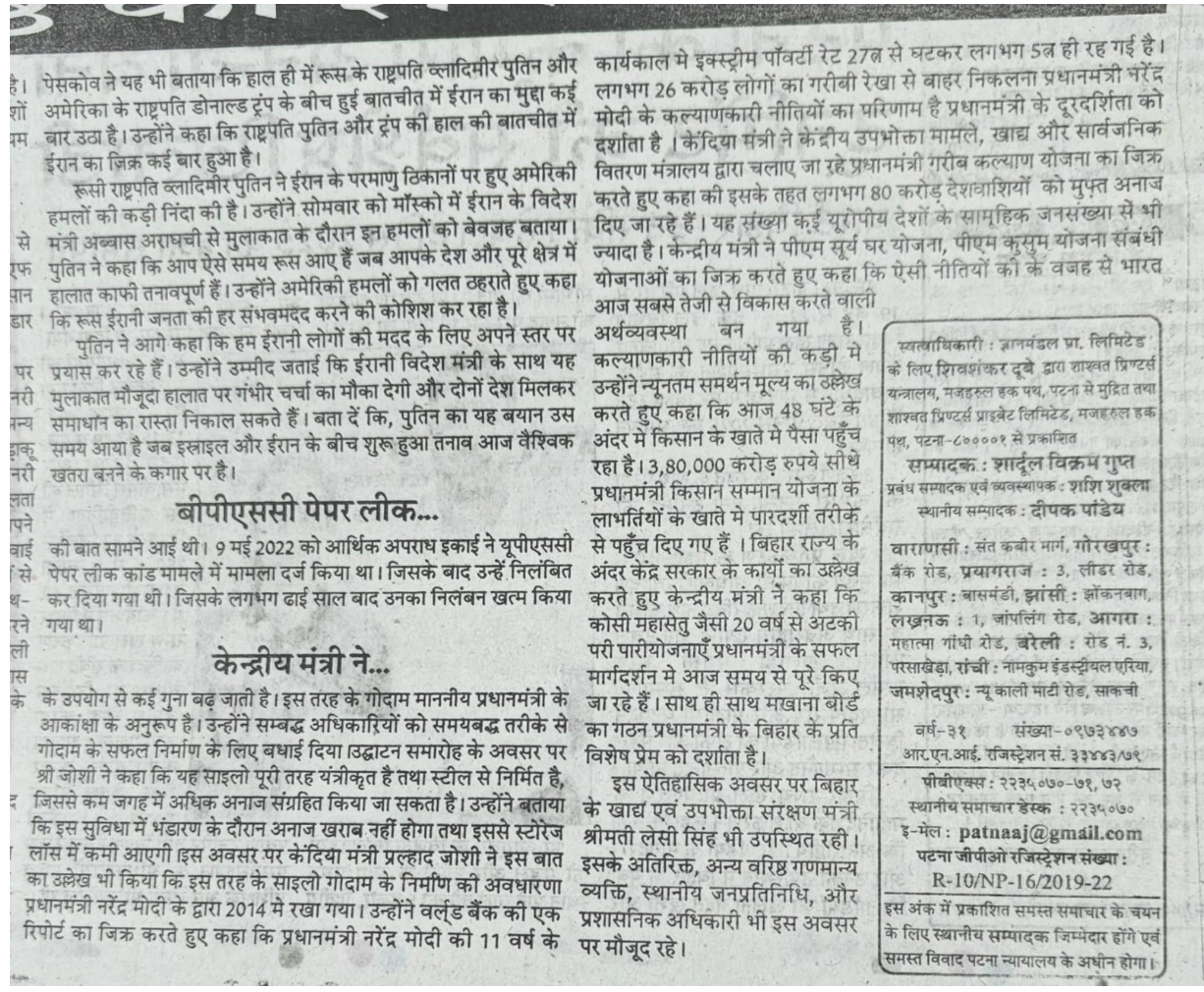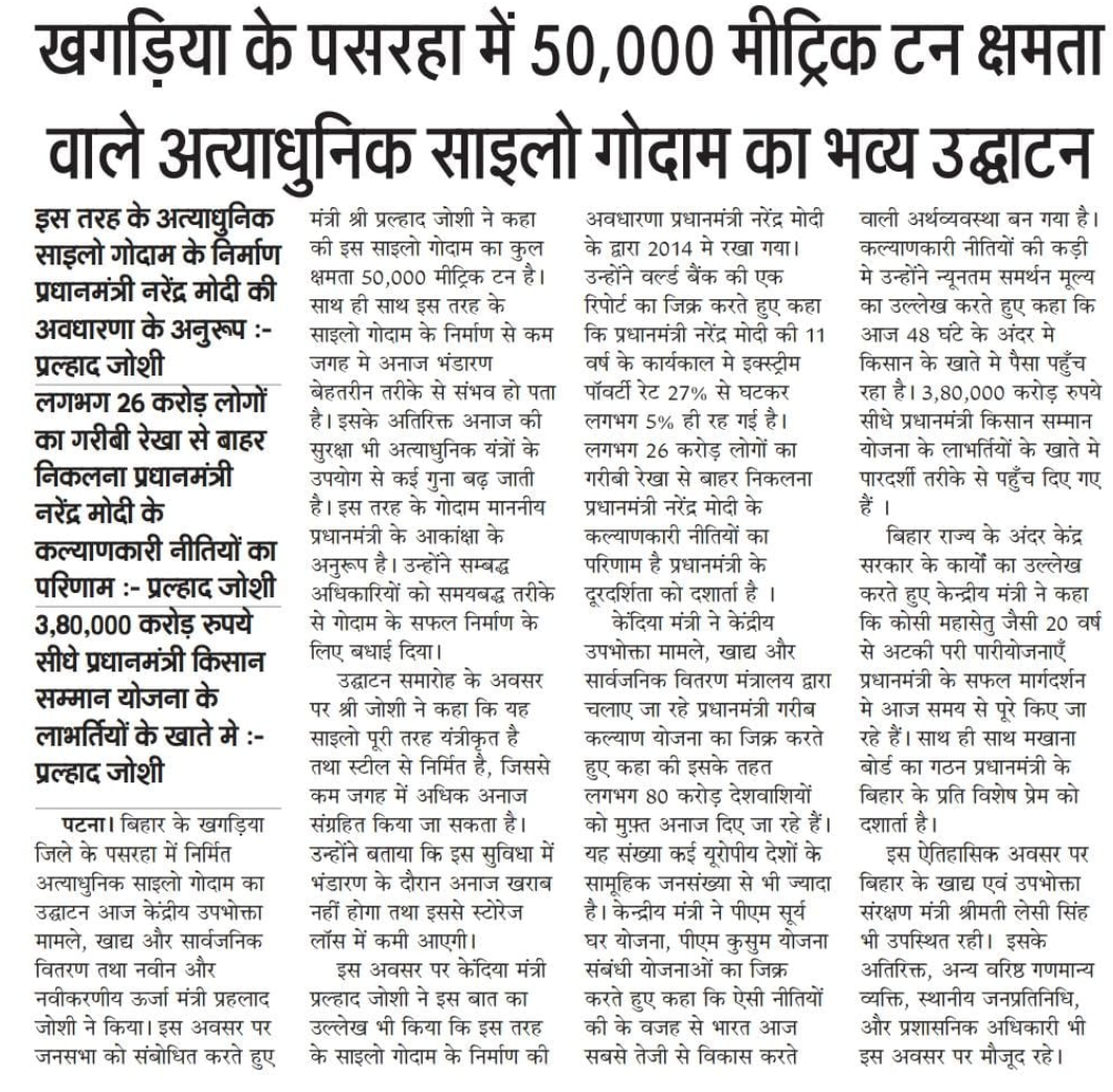 Following his appointment in June 2024 as the Union Cabinet Minister of Consumer Affairs, Food and Public Distribution, and Minister of New and Renewable Energy, Shri Joshi has been at the forefront of implementing key government initiatives. One of the most impactful schemes under his leadership is the PM SuryaGhar Muft Bijli Yojana, launched under the visionary leadership of the Hon’ble Prime Minister Shri Narendra Modi Ji. This transformative initiative aims to provide free electricity to millions of households by promoting rooftop solar power installations. By encouraging solar adoption, this scheme empowers citizens to embrace renewable energy solutions, reduces household electricity expenses, and significantly contributes to India’s ambitious clean energy targets.
